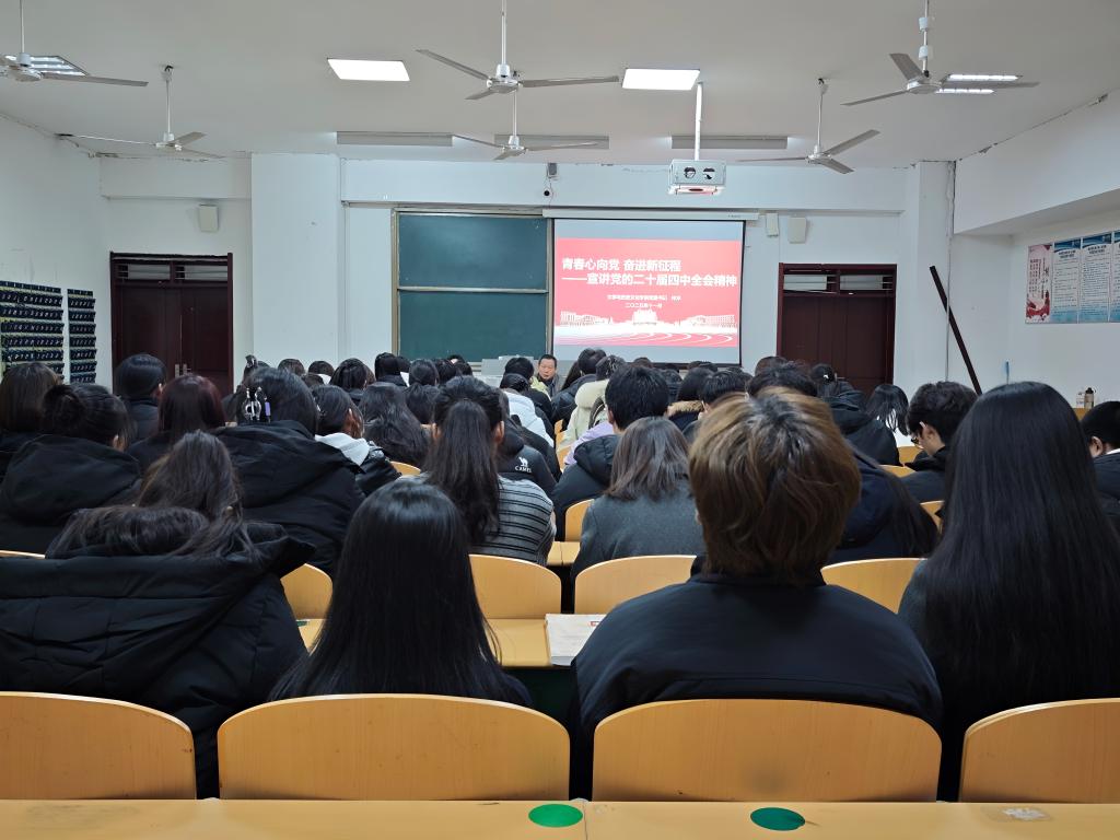 为深入学习贯彻党的二十届四中全会精神,引导青年学生坚定理想信念、强化使命担当,11月18日,德赢ac米兰官方合作举办“青春心向党 奋进新征程”宣讲党的二十届四中全会精神主题党课。本次党课由学院党委书记仲冲主讲,学院部分教职工、学生党员、学生骨干、学生入党积极分子参加。