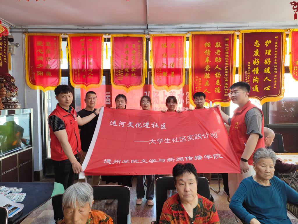 本次活动,团支部成员首先来到了社区敬老院,为老人们送上了真挚的关切与问候,随后向社区居民们分发了大运河宣传彩页,邀请社区居民们共同感受运河文化的发展、兴盛和积淀。本次活动的宣传重点是向社区居民讲解京杭大运河的历史、德州大运河的前世今生、四女寺枢纽工程等等。有经验的老人们就德州运河水利的发展与大学生朋友们进行了深入交流,分享着这片热土上的人、事、物。此次活动的开展,能让更多的老人感受到运河文化,更好地展现运河之重、运河之美、运河之新,讲好生动的运河故事,让运河文化得到更好地传承,在新时代凝聚共识,把文化转化为时代的力量。
