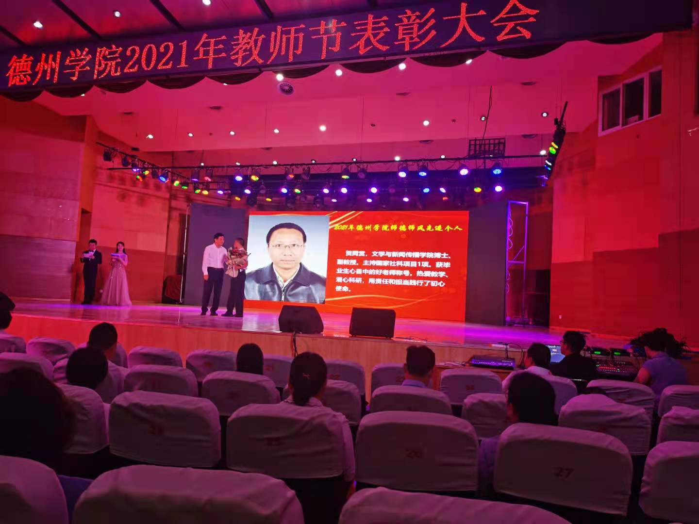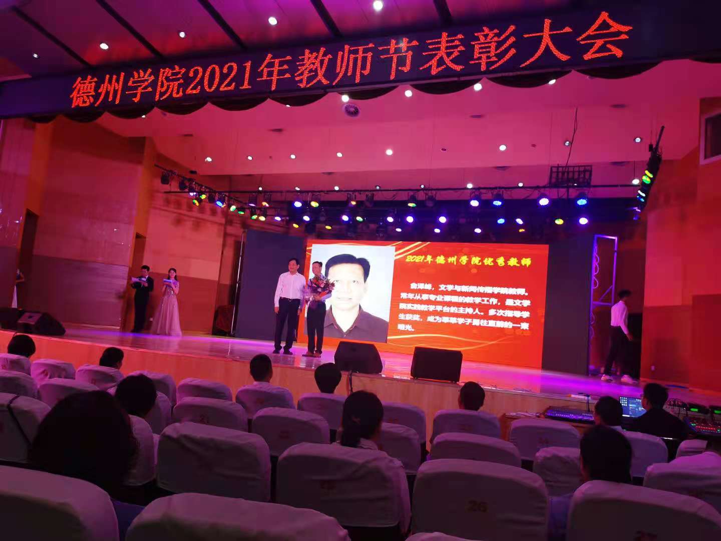 9日上午,在第37个教师节来临之际,学校在音乐厅召开2021年教师节表彰大会,表彰2021年德赢VWIN官方网站师德师风先进个人、优秀教师和优秀教育工作者。德赢官网两位教师获学校表彰,贺同赏老师获得2021年德赢VWIN官方网站师德师风先进个人称号,俞泽峰老师获得2021年德赢VWIN官方网站优秀教师称号。他们表示教师不仅传道授业解惑,更应致力于学生品格、品行、品位塑造,要以高尚的职业道德铸魂育人,以深厚的专业素养诲人不倦,努力向着“四有”好老师这个目标奋进。德赢官网新入职教师庄严宣誓,表达要忠诚党的教育事业,努力做一名大学好老师。