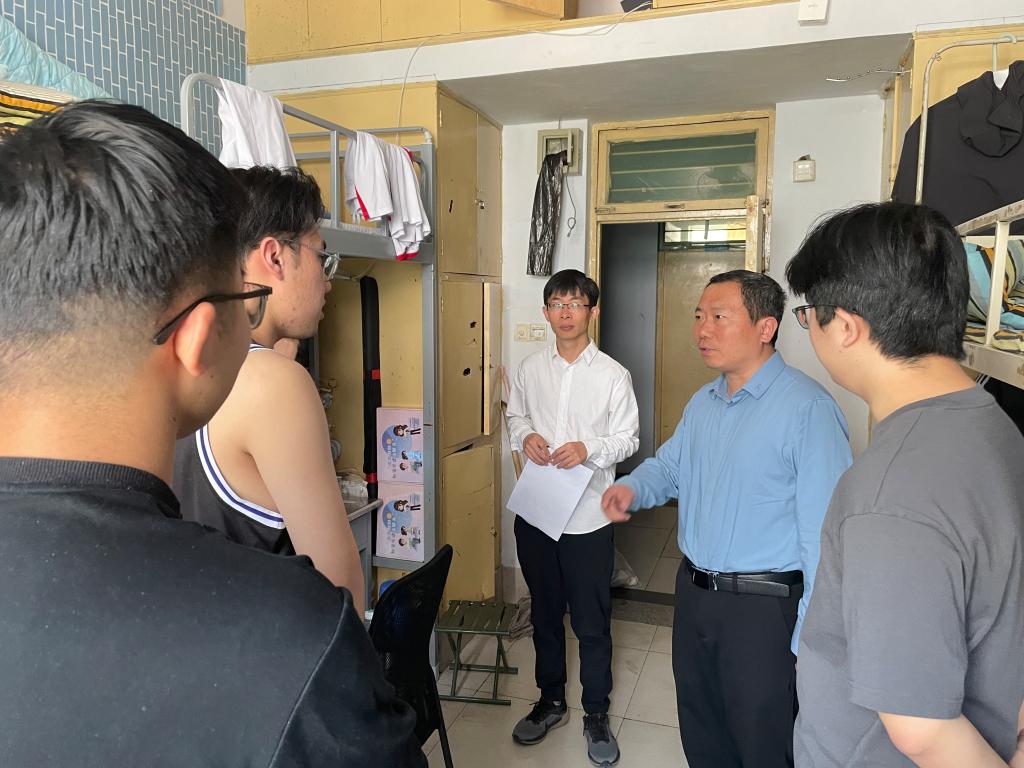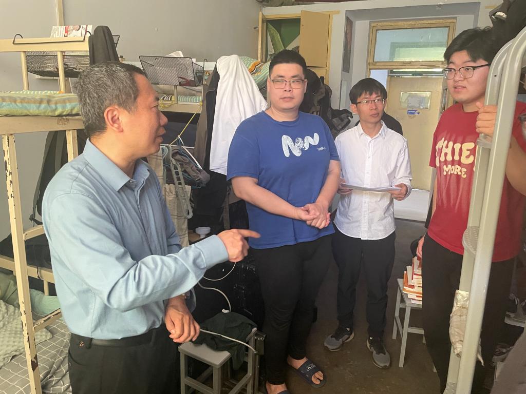 为强化假期安全管理与人文关怀工作,2025年5月1日,德赢VWIN官方网站党委书记仲冲、党委副书记鞠晶晶率领辅导员开展学生宿舍专项走访,系统开展安全隐患排查,并深入进行留校学生慰问工作。
