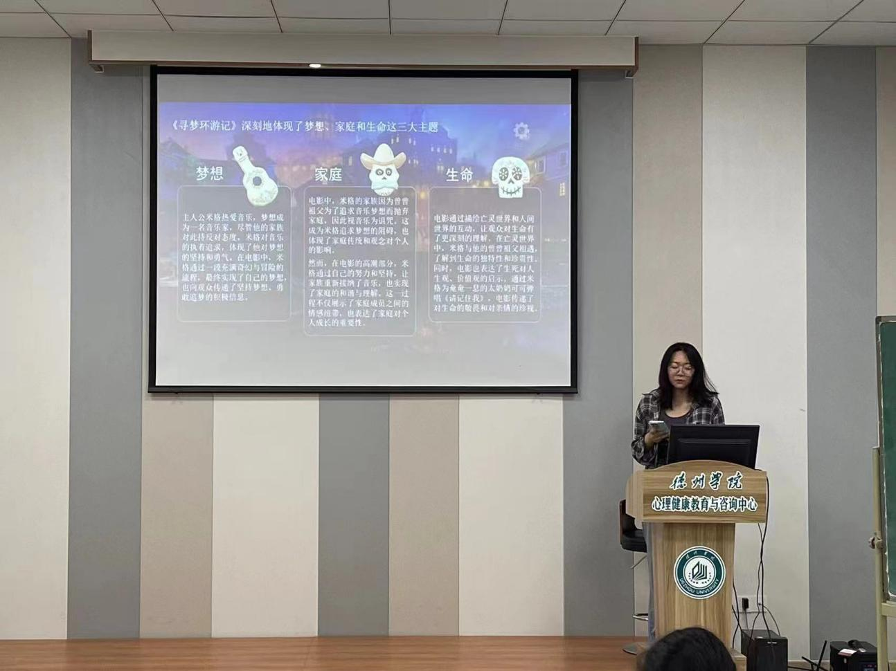 本次活动选择了温暖动人的影片《寻梦环游记》作为观影内容,影片从独特的视角探讨了梦想、家庭与生命等主题,活动现场氛围浓厚,同学们随着情节的发展或欢笑、或感动,在观影的同时,心灵上得到了一次深刻的触动与洗礼。影片所传达的深刻内涵,也让每个人关注到心理健康的重要性,为同学们的健康发展打下坚实的基础,助力同学们在个人成长的道路上从容应对困难与挑战。