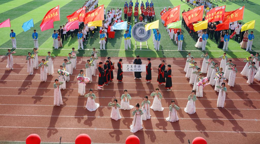 25日上午,伴随着昂扬的音乐,各学院师生方队依次步入运动场,接受检阅。德赢官网方队身着传统服装,精神抖擞,让我校全体师生感受到德赢官网师生向上向善的精神以及传统文化的独特韵味。在随后的开幕式团体操表演中,文院学子与我校退休老教师及外国语学院联袂带来开场舞《祖国不会忘记》,节目整齐划一,热情洋溢,彰显德赢官网学子热爱祖国,努力奉献的精神。