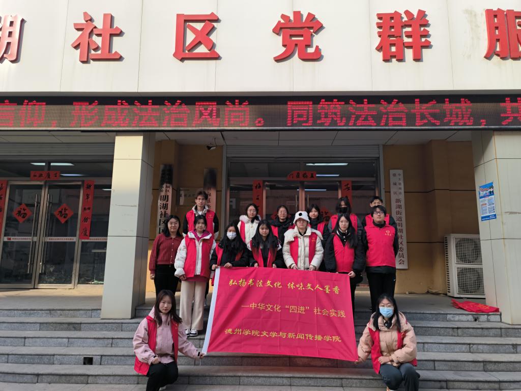 为培养社区群众对书法的兴趣,激发人们对书法文化的好奇心,引导人们深入了解汉字的历史和文化,感受中国书法文化的魅力,文学与新闻传播学院于2024年2月27日下午在明湖社区开展“弘扬书法文化,体味文人墨香”中华文化四进”社会实践活动。