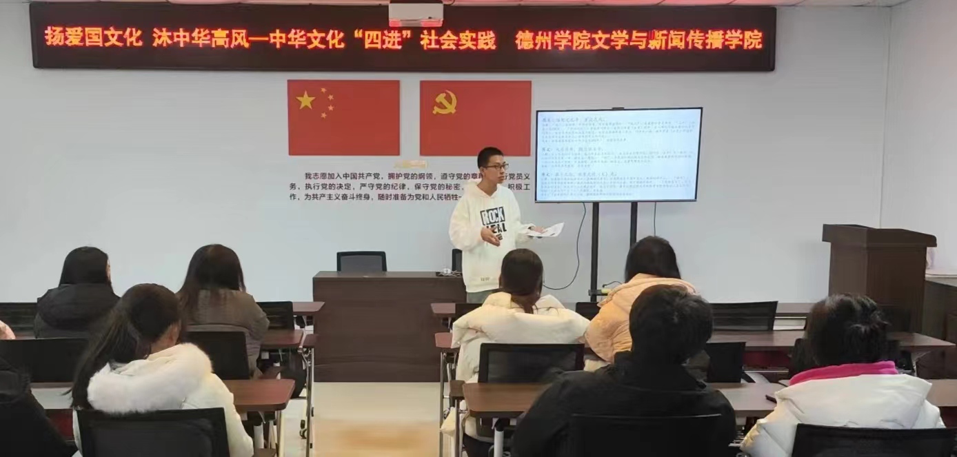 为了传承中华优秀传统文化,培养同学们的爱国情怀,促进学生全面发展,2024年2月28日,德赢VWIN官方网站文学与新闻传播学院走进德州市德城区新湖街道明湖社区开展了“扬爱国文化,沐中华高风”主题志愿宣讲活动。