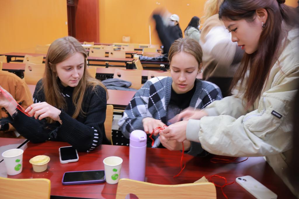 此次活动旨在增进德赢VWIN官方网站中国学生与留学生的友谊交流,同时展示中国优秀传统文化的魅力。活动开始,23汉教的同学们轮流献上精彩的演出,一首《最炫民族风》让现场气氛高涨,中国古代文化吟诵《一剪梅》等节目让现场的观众感受到了中华文化的独特魅力,同学们收获满满。随后,剪纸非遗传承人张建志老师和他的助理徐延芳老师向全体参与活动者展示了复杂美丽惟妙惟肖的剪纸作品,同学们积极地向老师提问,现场互动格外活跃,同时他们还体验了如何编织中国结,体验之余,《你画我猜》《abcd》《大小西瓜》等游戏依次展开,同学们在活动中展现才华和热情,也在互动中加强与各国青年的友谊交流。