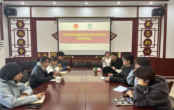 为进一步加强和改进文学与新闻传播学院学生会工作,扎实推进文学院学生会组织改革,全面改进文学院学生会工作作风,树立清新阳光的学生会组织形象,更好地服务同学,2023年11月9日,文学与新闻传播学院学生会于博文楼329会议室召开了学生会骨干作风建设教育培训会,文学院全体学生会骨干参与会议。