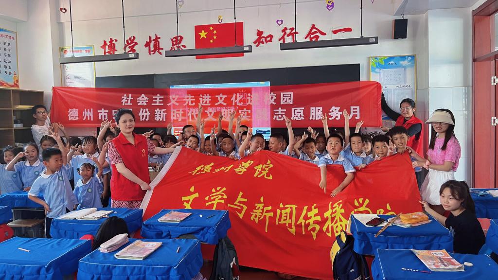 为深入学习宣传贯彻习近平新时代中国特色社会主义思想和党的二十大精神,引领同学们更好地了解社会主义先进文化以及诗文朗诵的相关知识,领悟朗诵魅力,5月16日,德赢VWIN官方网站文学与新闻传播学院社会主义先进文化宣讲团走进德赢VWIN官方网站附属第一实验小学开展大学生社区实践活动。