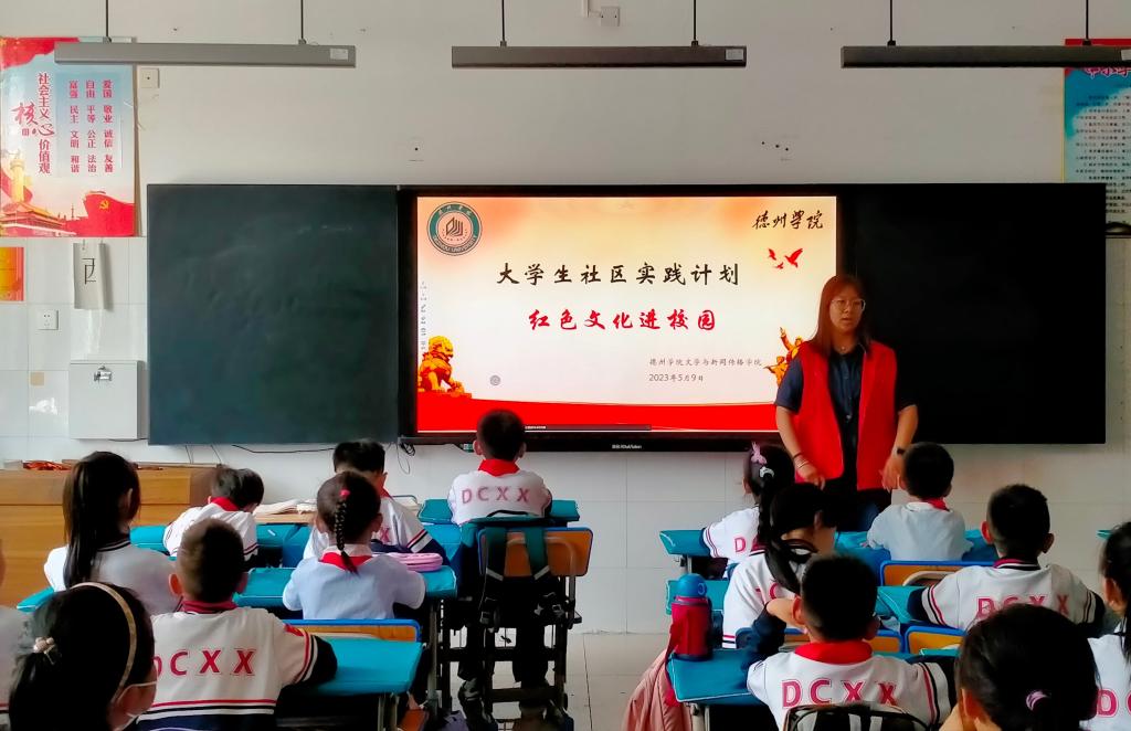 为深入学习贯彻党的二十大精神,大力弘扬红色文化,缅怀英雄人物,引领同学们在社区实践中感受传承的意义、体味教育的魅力,5月9日,德赢VWIN官方网站文学与新闻传播学院红色文化宣讲团走进东城小学开展大学生社区实践活动。
