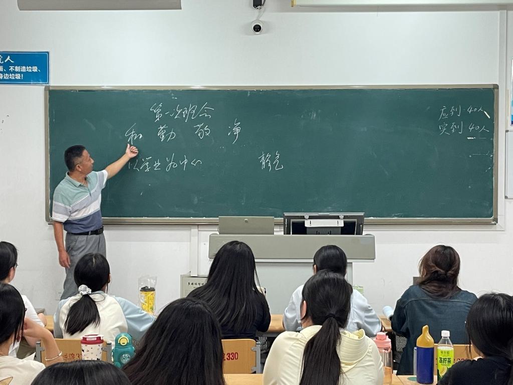 为全面落实习近平文化思想,凝聚以文化人、以文育人的教育共识, 9月1日,学院共八个新生班级以“和勤敬净”为文化主线召开了新生班会,由博士班主任、年级辅导员主讲。