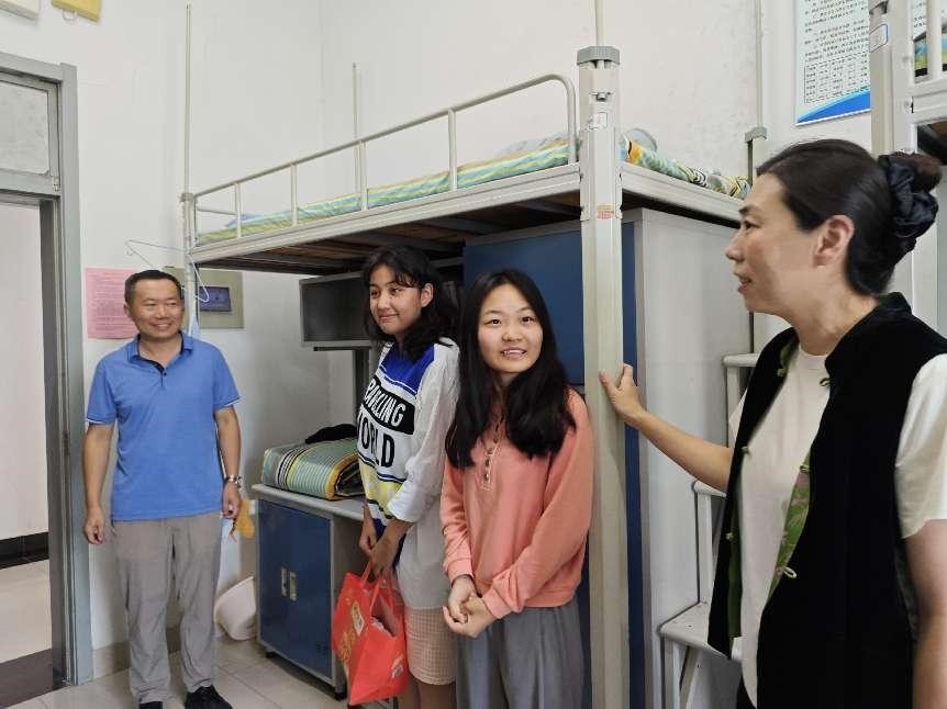 9月16日下午,德赢ac米兰官方合作党委书记仲冲、党委副书记、副院长黄传波、党委副书记鞠晶晶、24级辅导员李晓燕、辅导员沙彦君来到学生宿舍,耐心询问同学来校后的生活和学习情况,是否适应鲁西北的饮食与气候,中秋节想不想家。同学们纷纷谈了她们各自的入学感受,对学校、学院为学生的学习、生活提供的便利条件表示感谢,对老师无微不至、春风化雨的关心表示感动,决心提升自身综合素质,学好专业技能,秉承崇德启智励志博学的德院精神,积极进取。