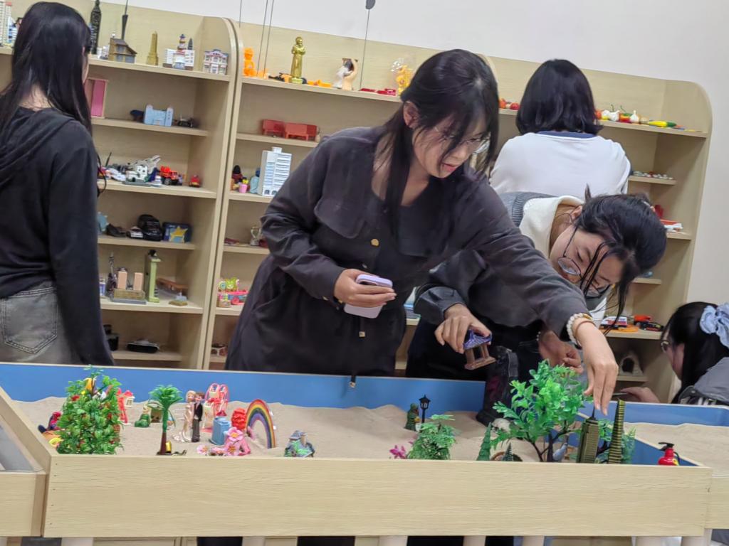 活动过程中开展了“你画我猜”“大风吹小风吹”以及“共绘沙世界,同行启新程”三部分富有趣味性的活动,同学们积极参与,活动现场欢声笑语与心灵的交流交织在一起,他们勇于表达自我,展现自我,彼此相互协作取得游戏的胜利,并在活动最后共同完成了沙画作品并命名为《缤纷奇境》。本次活动让大家卸下疲惫,感受集体带来的温暖与力量,传递爱和阳光,使大家感受到了心理健康的必要性与重要意义,共同守护美好未来。