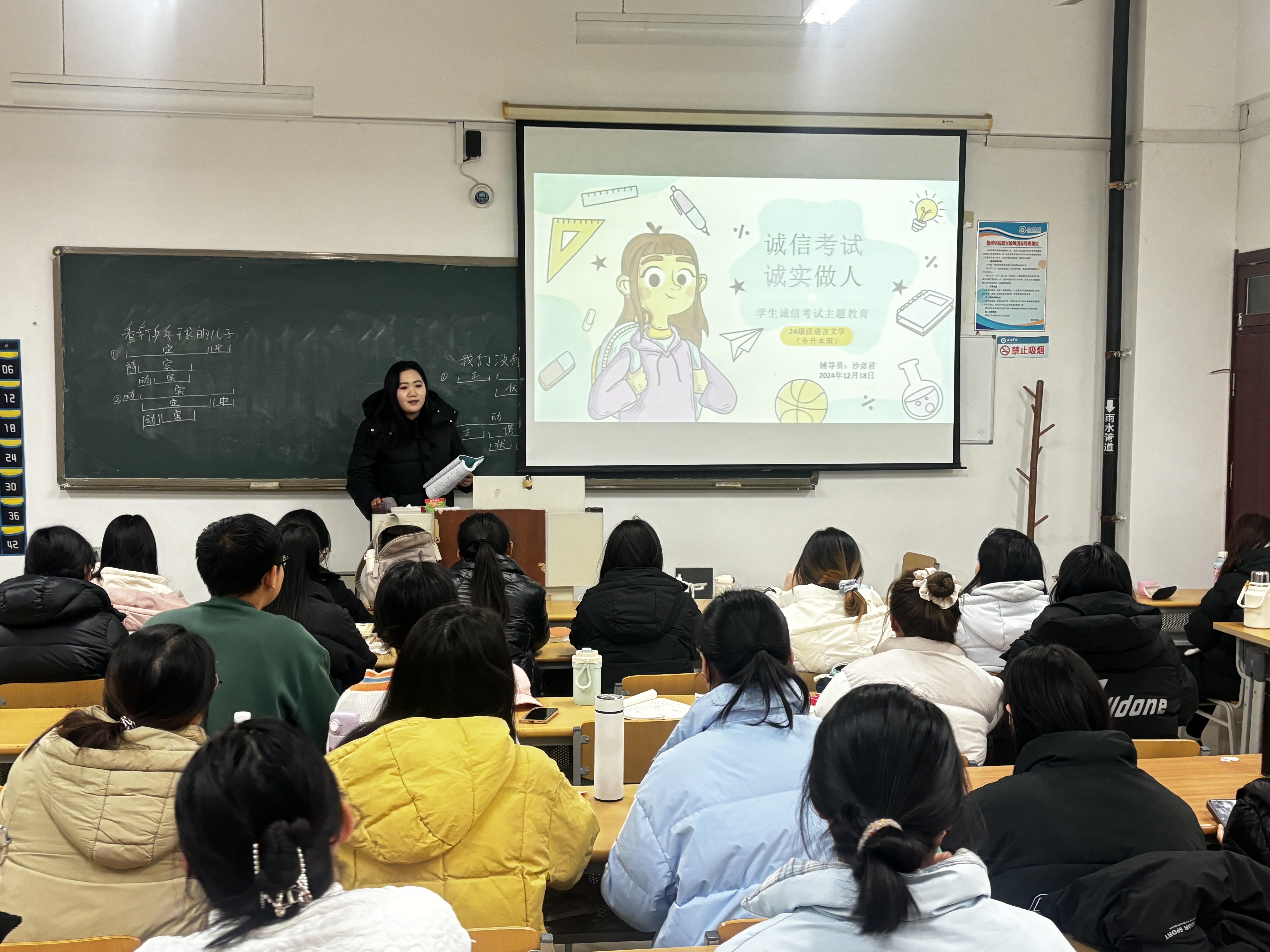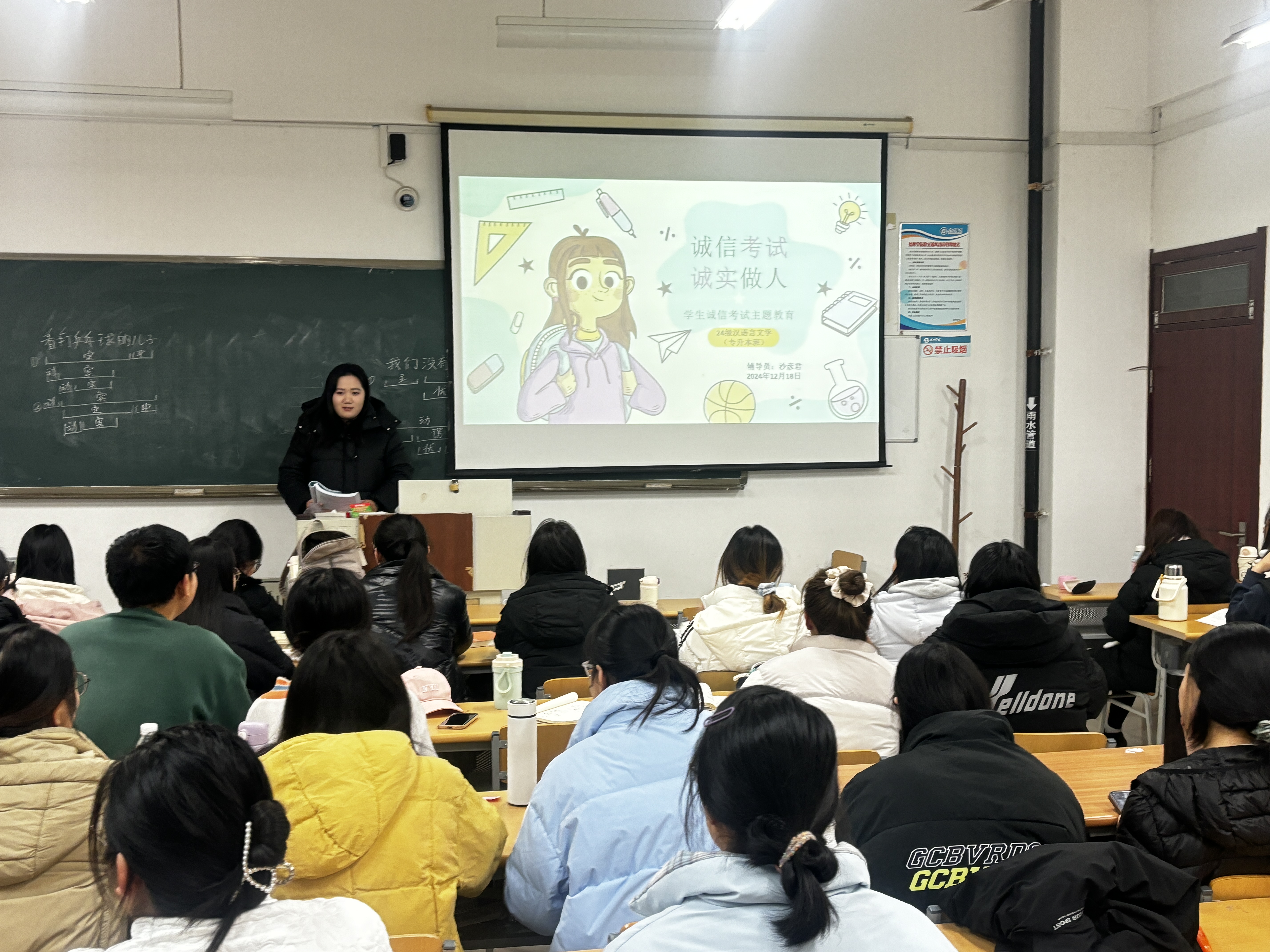 为积极响应学校加强考风考纪建设的号召,营造诚信考试的良好氛围,2024级汉语言文学专升本班于1218日召开了诚信考试主题班会。本次班会由辅导员沙老师主持,全体同学共同参与,旨在强化同学们的诚信意识,引导大家树立正确的考试观念,以积极、端正的态度迎接即将到来的考试。