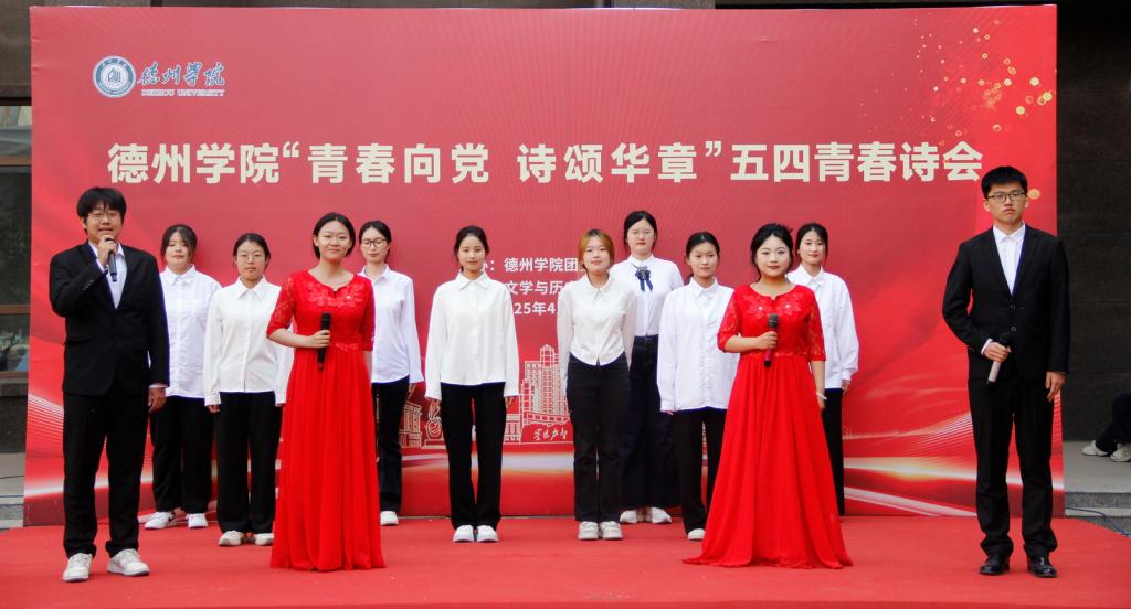 本次青春诗会不仅是一场高水准的诗歌艺术盛宴,更是一堂生动的思政教育实践课。青年学子通过真挚的情感表达和精湛的艺术呈现,深刻诠释了对党、对祖国、对青春的热爱与追求。今年学校“五四”系列活动以“青春挺膺担使命,砥砺奋进启新程”为主题,包含“铸魂育人”“文化传承”“青创未来”“就业引航”等板块12项重点活动,充分彰显德院青年赓续五四精神、勇担时代重任的坚定信念,激励广大青年为努力实现学校高质量发展和奋力开创高水平、有特色、国际化应用型大学建设新局面贡献青春力量,在民族复兴的伟大征程中书写更加绚丽的青春篇章。