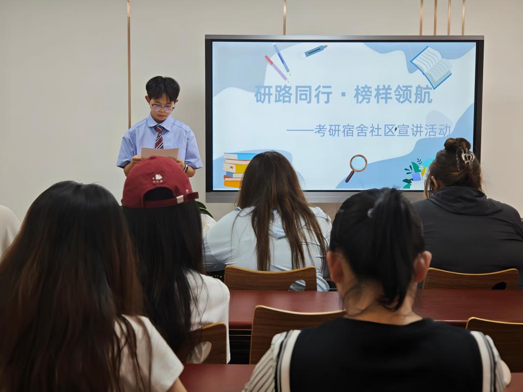 为发挥考研榜样引领作用,助力考研学子合理规划、科学备考,5月20日下午,“研路同行,榜样领航”考研宿舍社区宣讲活动在“一站式”学生社区学生事务与发展中心二楼启智堂举办,德赢ac米兰官方合作24-6218宿舍上岸学子们担任主讲,围绕择校策略、备考规划、心态调整等核心问题展开分享,吸引了众多备战考研的学生参与,现场反响热烈。
