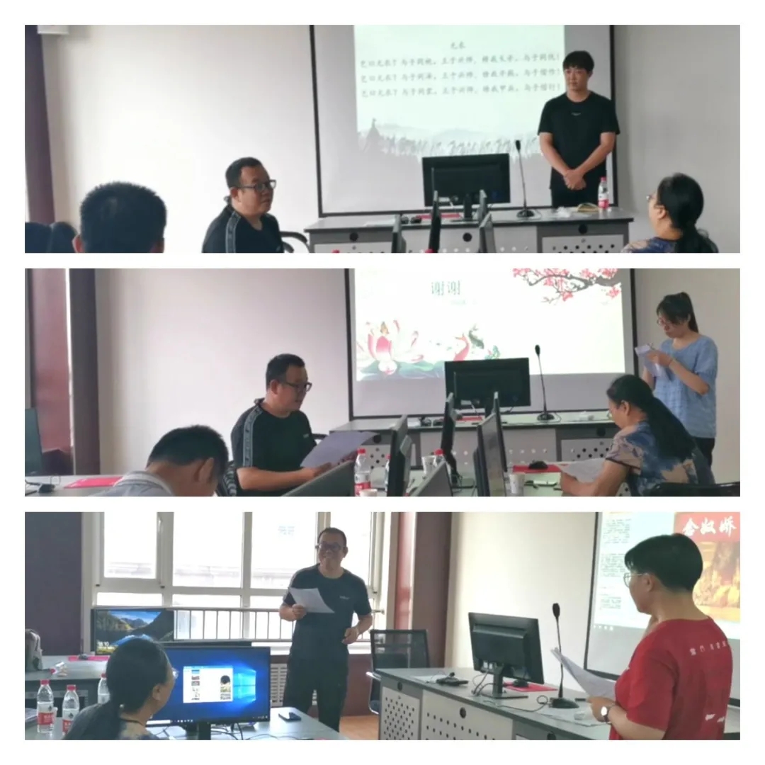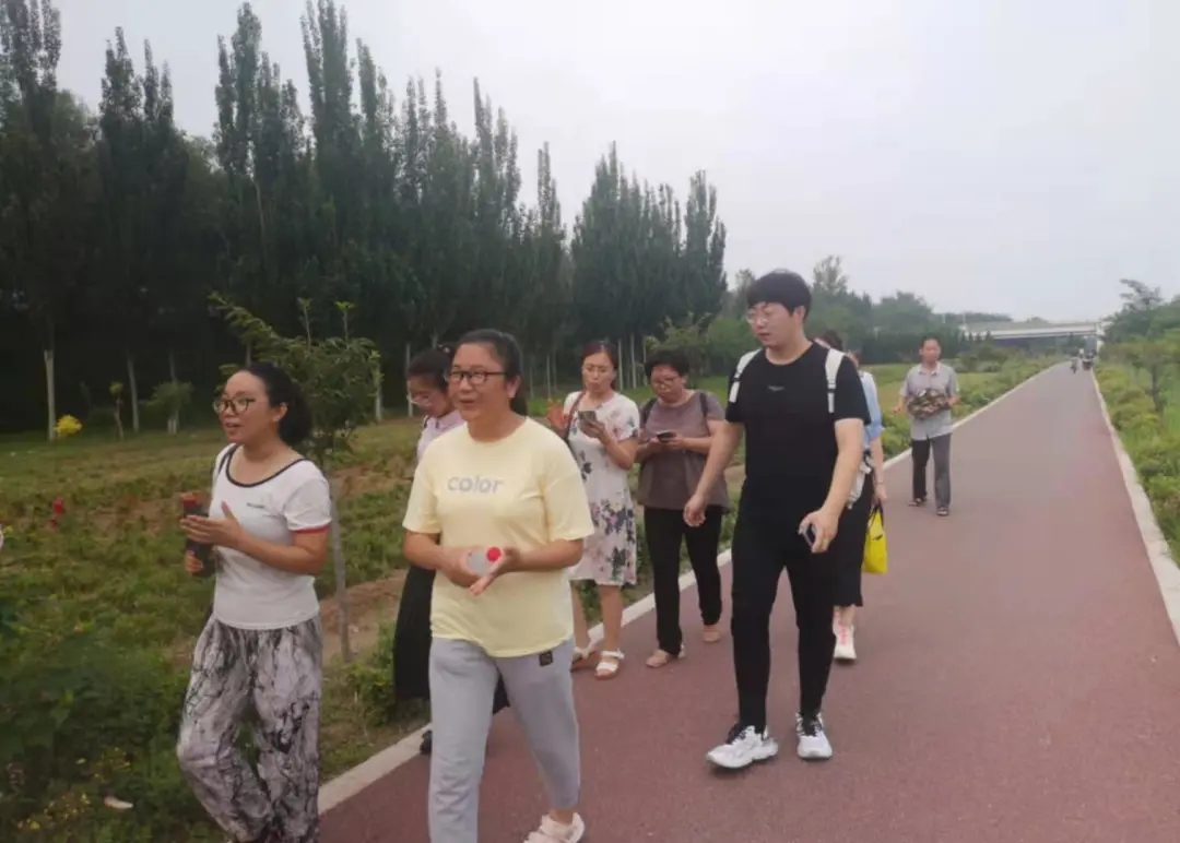7月18日下午,师生们行吟岔河之畔。在秀丽的风景中,大家吟诵了《木兰辞》《静夜思》《观沧海》等优秀诗篇。老师们行歌草,陶然忘机。本场活动以《登鹳雀楼》为例,创设情境,用吟诵的方式为大家分析诗歌情感的变化,让大家更精准地体会到如何在课堂上引导学生主动思考,不断联想,最终达到“以诗化人”的目的。活动中,大家踊跃表达自己的想法,展示自己的收获,形成了新一轮的思想碰撞。