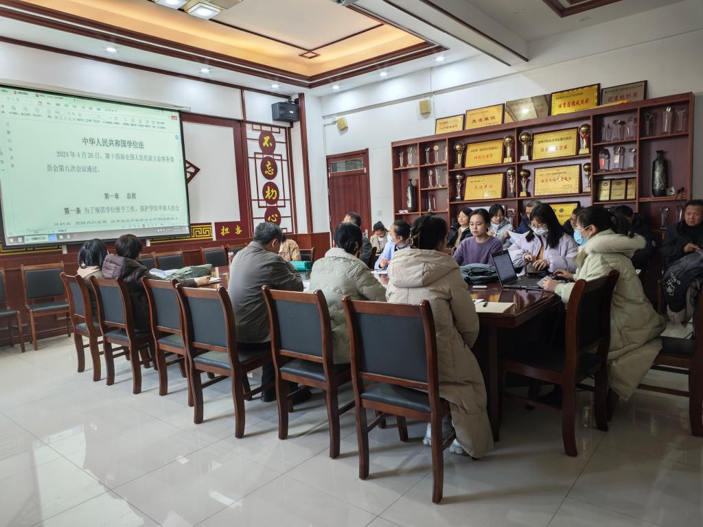 在全面推进依法治教、依法办学、依法治校的大背景下,德赢VWIN官方网站积极响应国家号召,于12月24日在博文楼329会议室组织进行《中华人民共和国学位法》专题学习活动,德赢ac米兰官方合作全体在职教师积极参与学习。