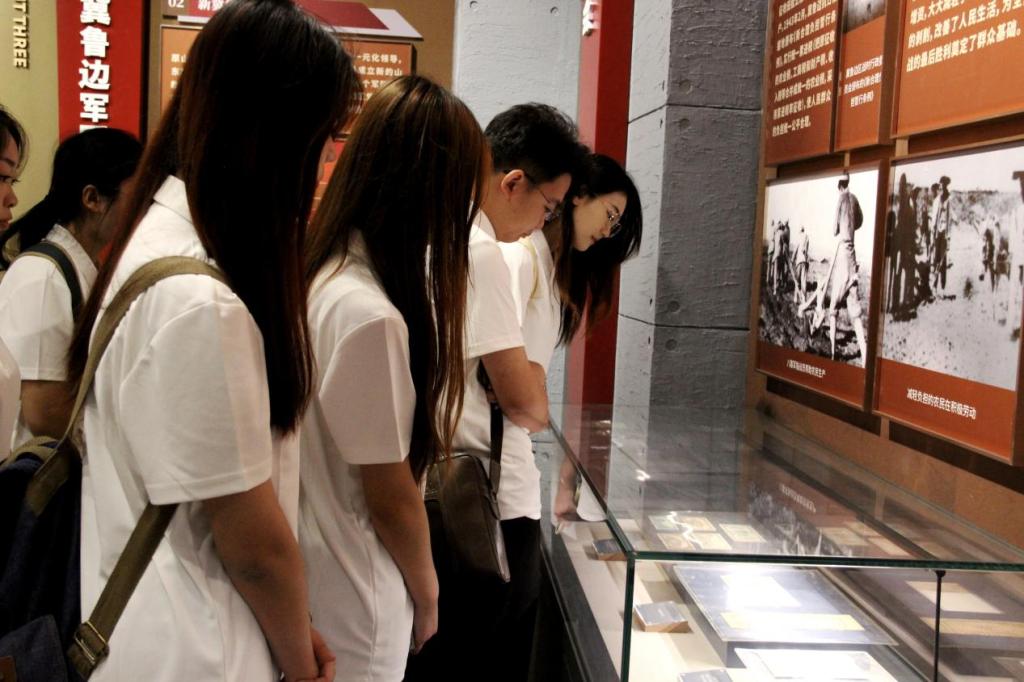 冀鲁边区革命根据地,是中国共产党领导下的山东省最早建立的抗日根据地。上午,在乐陵市冀鲁边区革命纪念馆,同学们踏入馆内,仿佛穿越时空,回到了那段烽火连天的革命岁月。陈列的一幅幅珍贵的历史图片,一件件军民使用过的武器和满是补丁的军装等革命文物,记录着革命先辈们在艰苦环境中奋勇抗争的瞬间,充分体现了革命先烈们为了民族的独立解放,抛头颅、洒热血的英勇无畏精神。师生们被先辈们的牺牲、奉献精神所感动,内心涌起一股股强烈的崇敬之情。