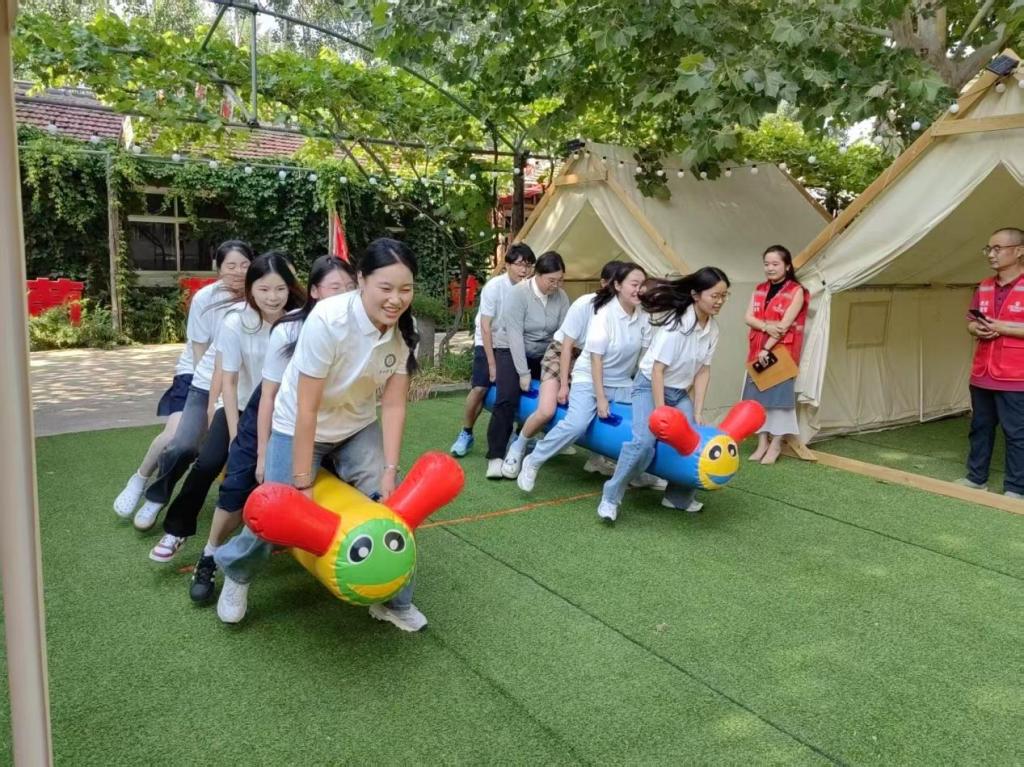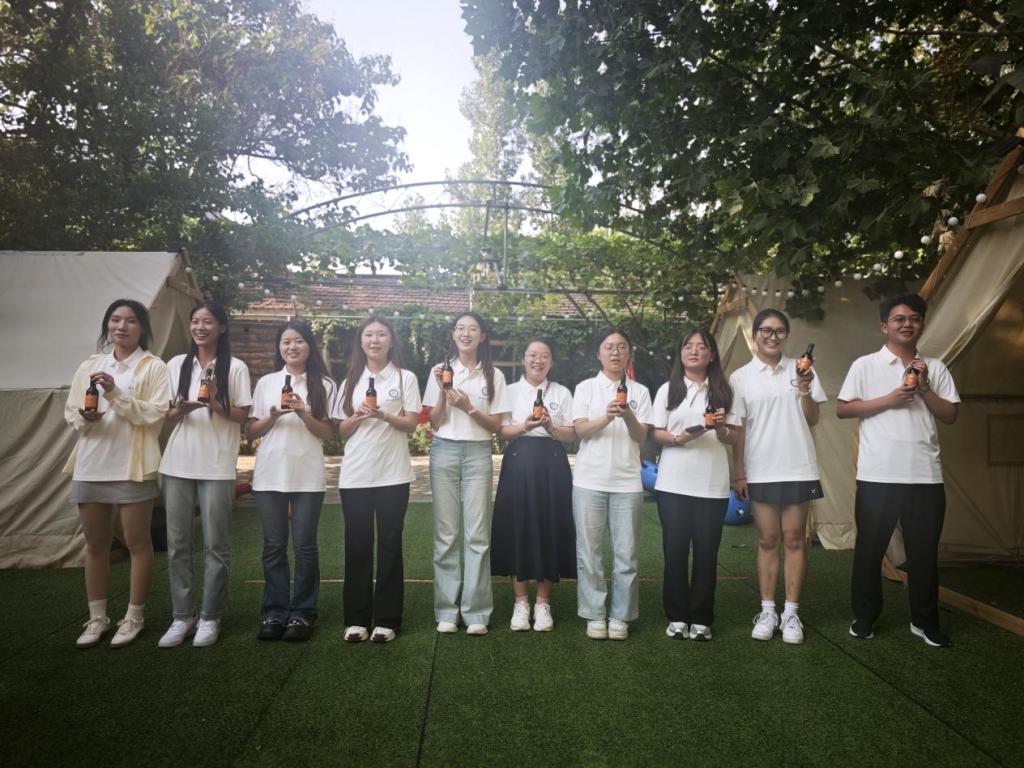 在大会议室,奥德曼葡萄酒庄徐义董事长为同学们讲述了个人学习、成长、创业的经历,重点介绍了如何改革、创新,传承弘扬中国传统葡萄酒文化,酿造出“耆红”古法高度葡萄酒,填补中国葡萄酒产品空白,屡次为国家争得荣誉,在国际市场上树立起民族高端葡萄酒品牌、为企业提升市场效益的精彩故事。分享了“路虽远,行则将至;事虽难,做则必成”的人生体悟,引发同学们深深的思索。酒庄新营地的团建游戏,更是将活动推向了高潮,同学们分为四组,先后参与了骑毛毛虫比赛和合力建塔游戏,尽情释放活力,体会团结协作的集体力量。