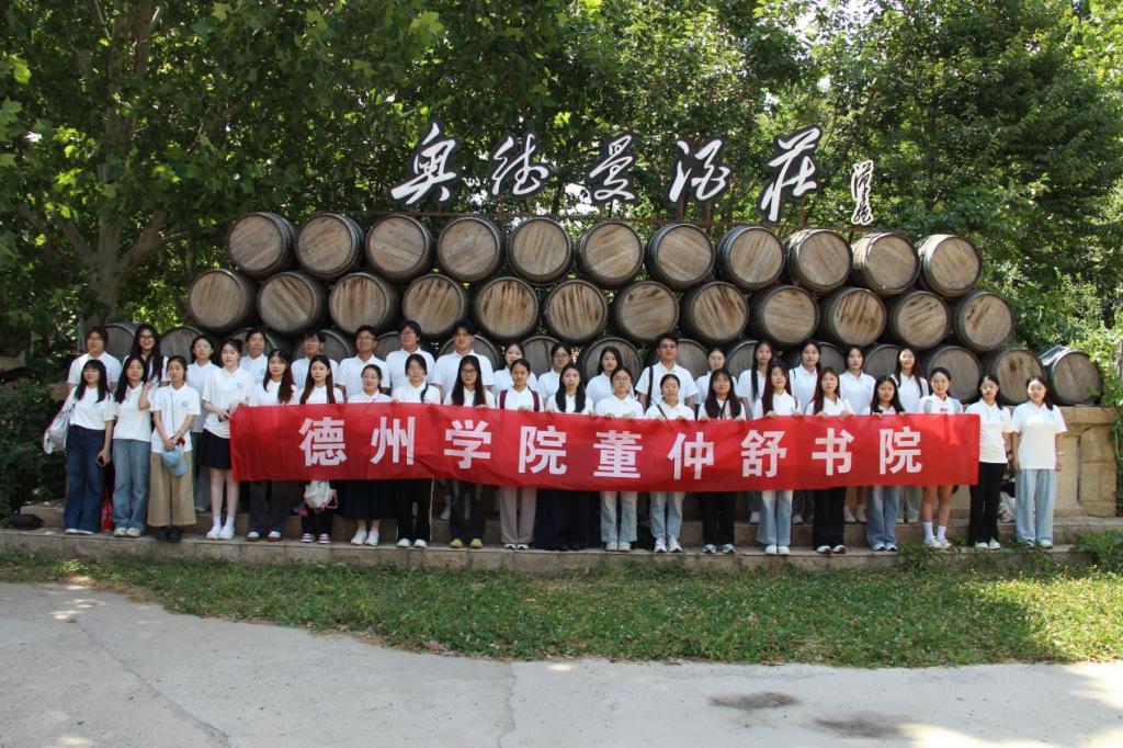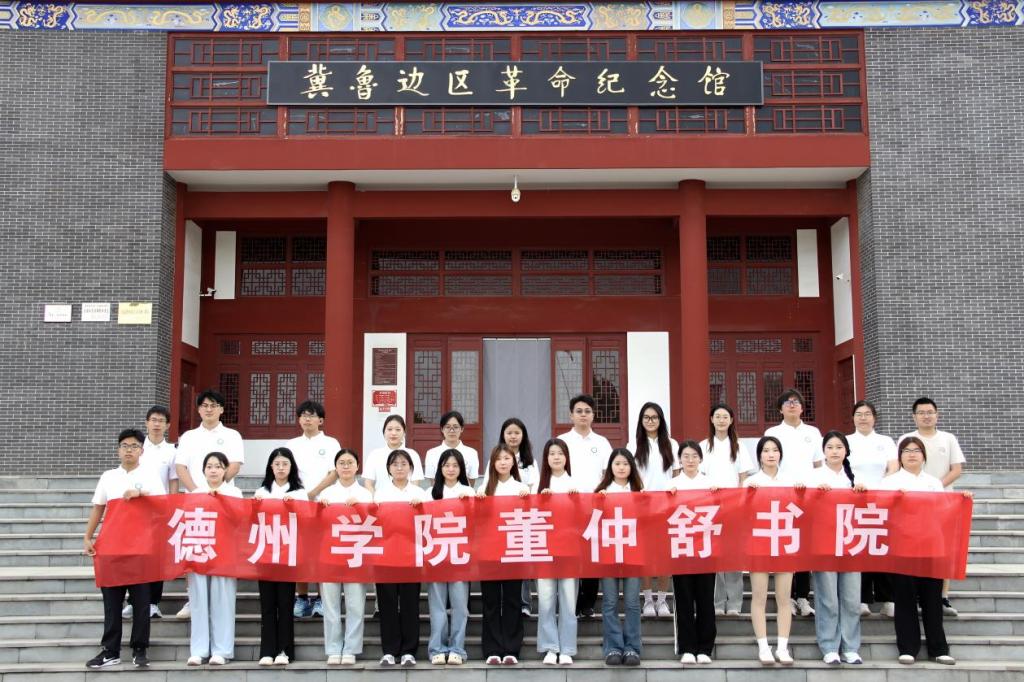 2025年6月15日,德赢VWIN官方网站董仲舒书院根据人才培养方案,举行首次研学活动。今年是中国人民抗日战争胜利暨世界反法西斯战争胜利八十周年,文史学院领导精心策划,将本次研学活动的主题定为:永固家国情怀,沐浴文化之光。书院40余名师生乘车先后来到乐陵市冀鲁边区革命纪念馆、宁津县渤海军区教导旅革命传统教育基地和奥德曼葡萄酒庄,接受教育、开阔眼界,增长才干。