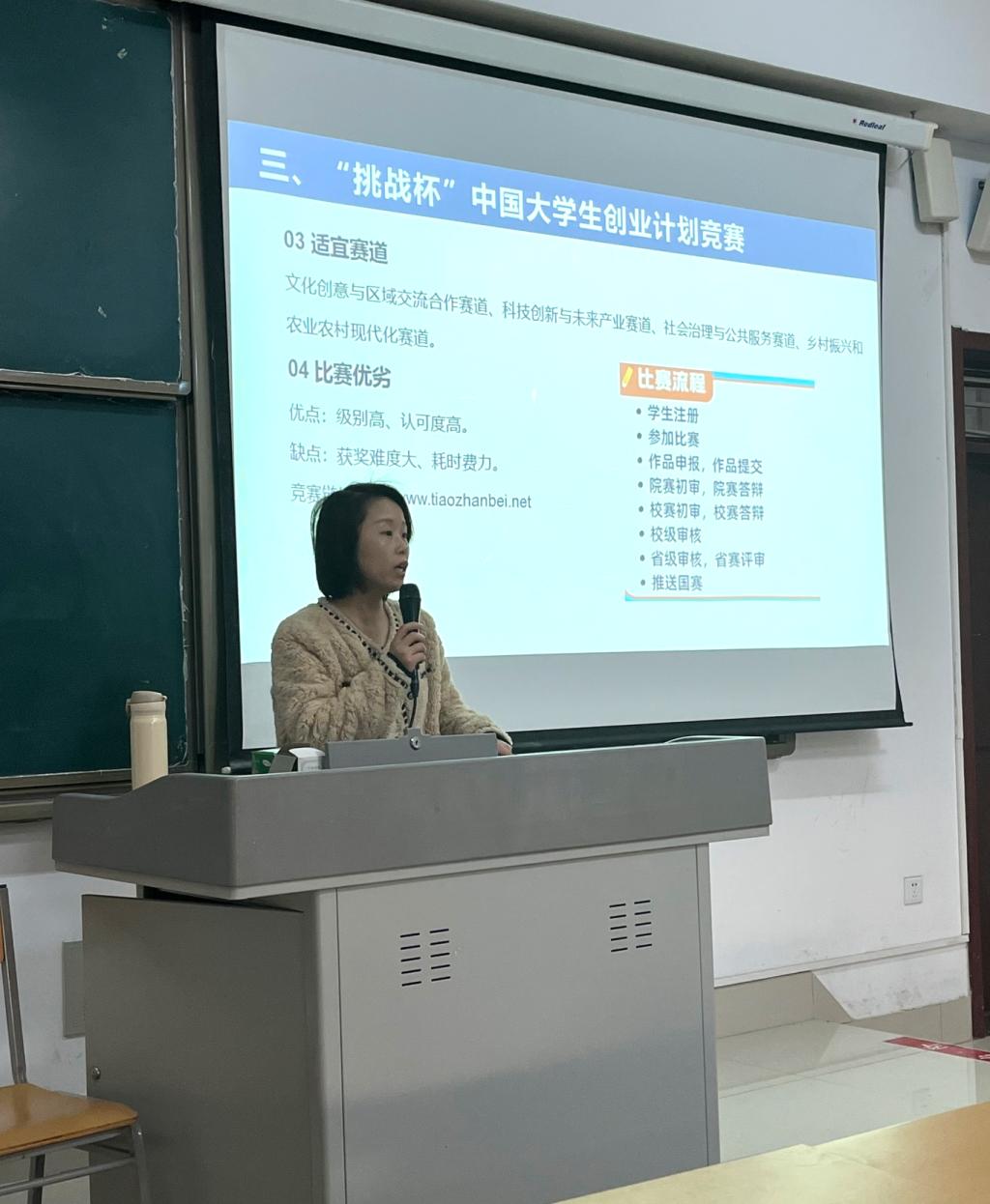 主讲老师围绕“如何选竞赛、高效备赛”这两大核心问题,展开了细致入微的讲解。在竞赛选择方面,老师详细介绍了诸如中国国际大学生创新大赛、全国大学生广告艺术大赛等一系列赛事,不仅明确了各类竞赛的报名时间、参赛要求,还精准剖析了其核心考察方向,助力学生结合自身情况精准选择竞赛。而在高效备赛方面,老师分享了文学院历年在各类竞赛中的获奖情况,并深入展示了优秀竞赛作品的核心亮点,为同学们提供了清晰可鉴的备赛参照。